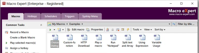 Macro Expert Enterprise 的界面简洁直观,即使是没有编程经验的用户也能轻松上手。它支持多种触发方式,包括系统事件、资源事件和驱动器事件,用户可以根据需要设置宏的触发条件。此外,该软件还提供了强大的数据管理功能,能够轻松提取、操作和传输数据。